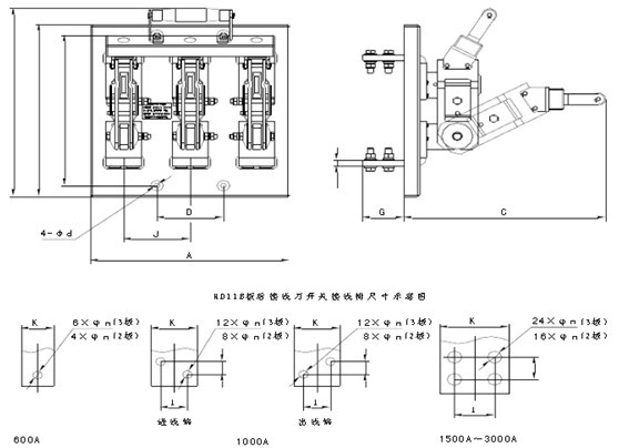 3極板后接線刀開關安裝示意圖