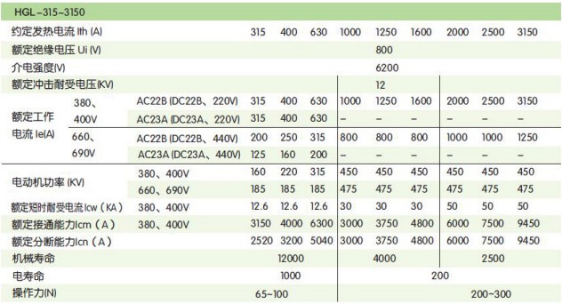 HGL系列隔離開關(guān),適用于交流50Hz、交流額定電壓690V及以下、直流額定電壓440V及以下,額定電流至3150A。
