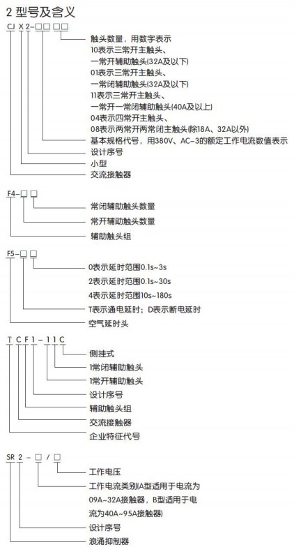 CJX2系列交流接觸器(以下簡稱接觸器),適用于交流50Hz(或60Hz)、電壓至690V,電流至95A的電路中,供遠距離接通和分斷電路、頻繁的啟動和控制交流電動機之用,并可適當(dāng)?shù)臒崂^電器組成帶你次啟動器以保護可能發(fā)生操作過負荷的電路。
