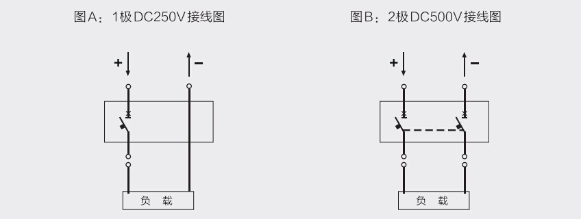 接線圖說(shuō)明: 1. 電源正極,電源負(fù)極。 2. L+負(fù)載正極,L-負(fù)載負(fù)極。 3. 嚴(yán)禁電源正負(fù)極反接。 4. 額定電壓:1P:DC250V;2P:DC500V;3P:DC750V;4P:DC1000V TX7-63Z小型直流斷路器產(chǎn)品特點(diǎn) 1. 分?jǐn)嗄芰?yōu)良; 2. 導(dǎo)線和匯流排雙重接線功能; 3. 快速閉合,壽命長(zhǎng); 4. 安裝、拆卸便捷; 5. 觸頭通斷指示,安全性更高; 6. 綠色環(huán)保節(jié)能;